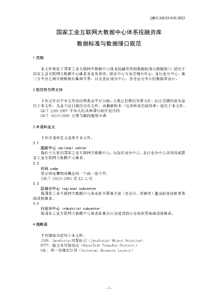 QB/CAII 03-010-2023 国家工业互联网大数据中心体系 投融资库 数据标准与数据接口规范