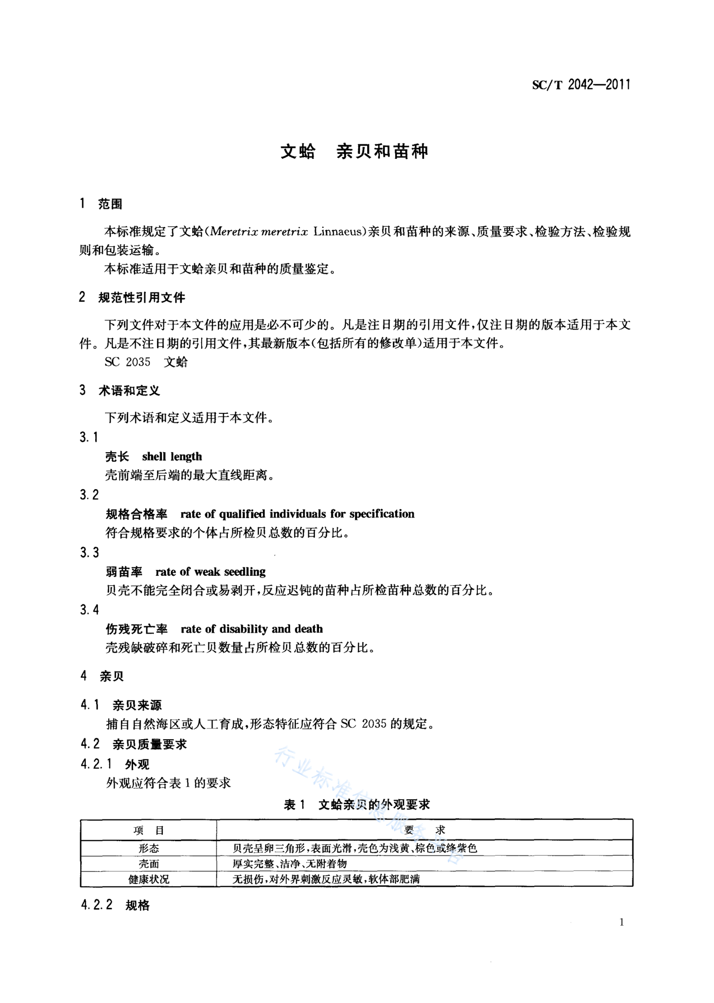SC/T 2042-2011 文蛤 亲贝和苗种