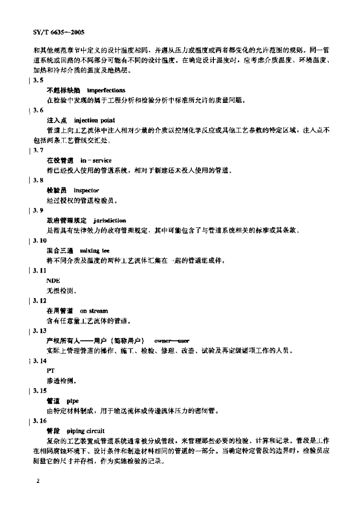 SY/T 6635-2005 管道系统组件检验推荐作法