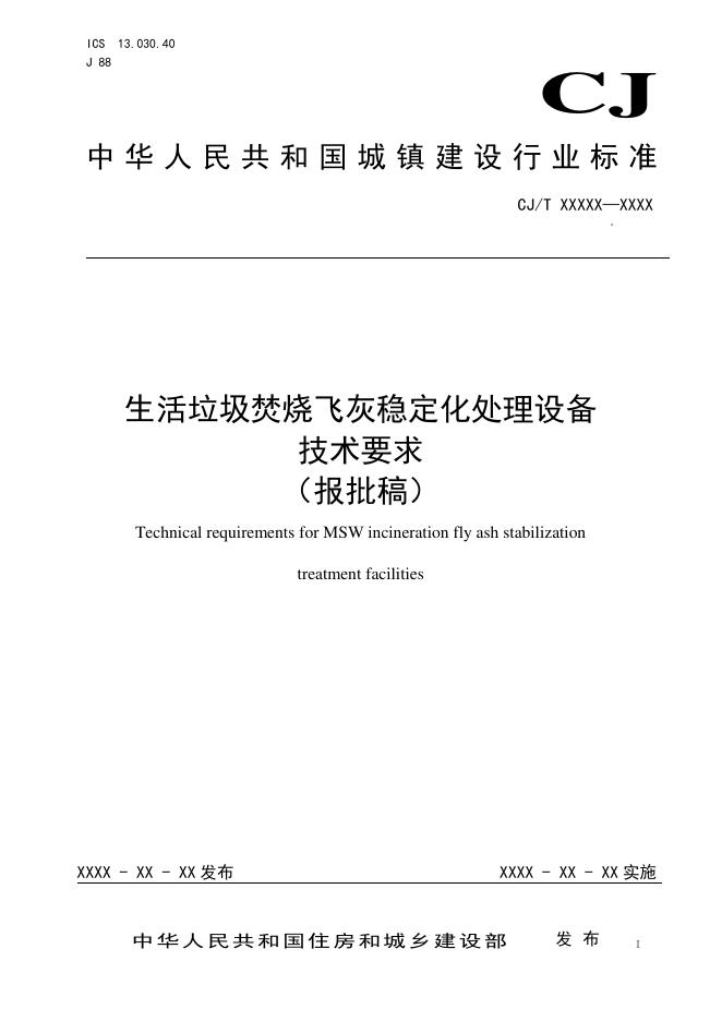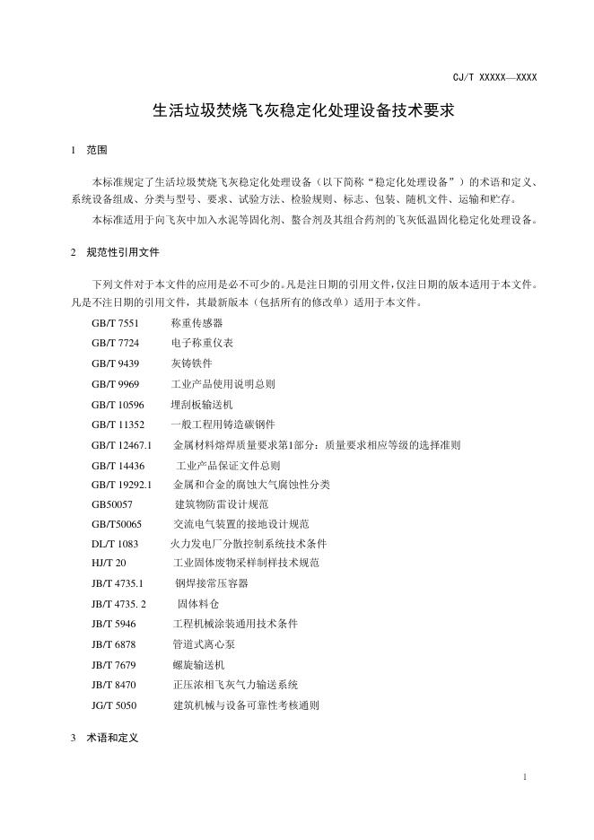 CJ/T 538-2019 生活垃圾焚烧飞灰稳定化处理设备技术要求