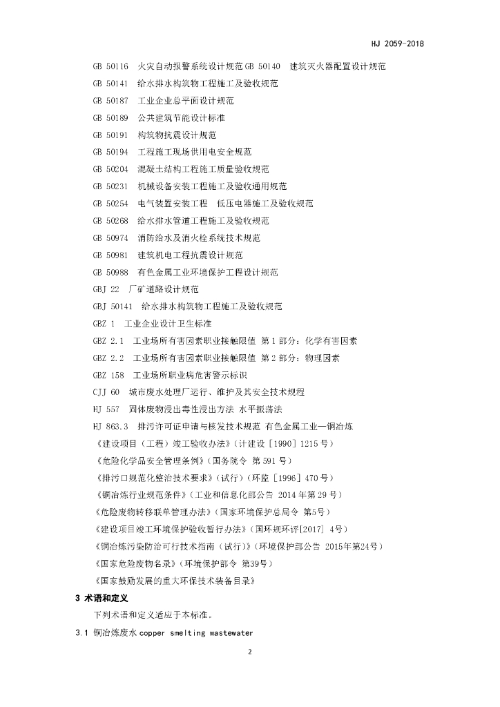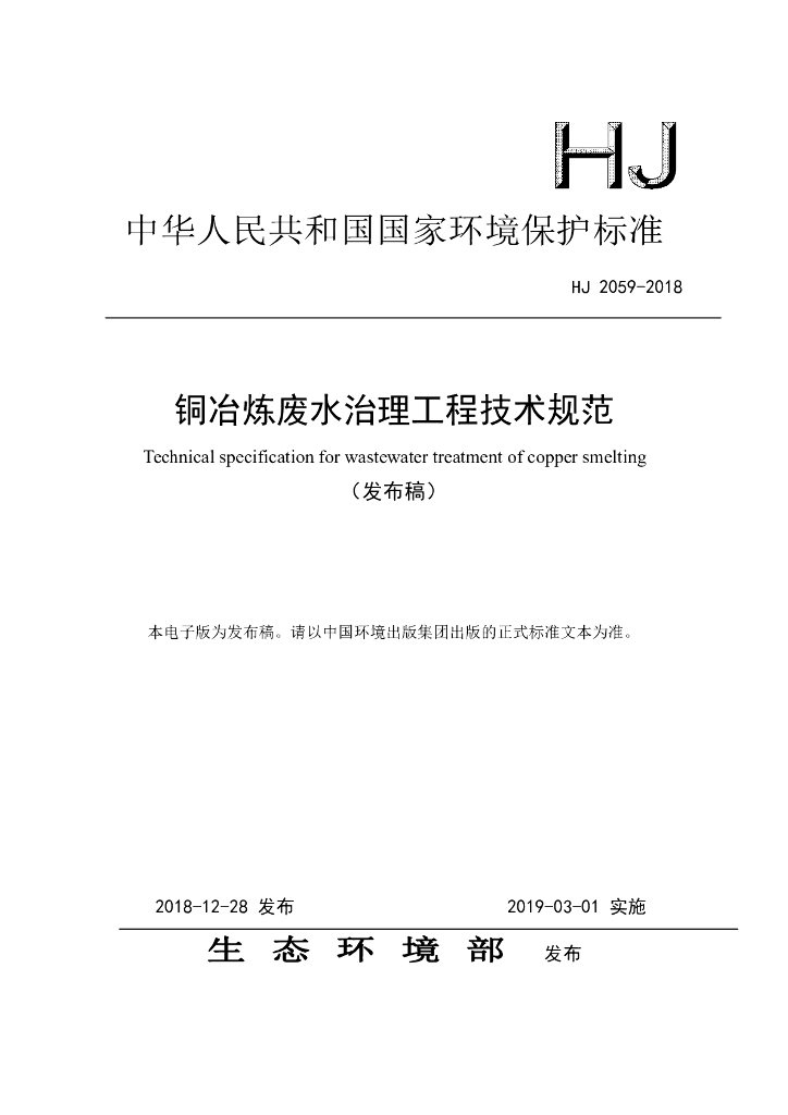 HJ 2059-2018 铜冶炼废水治理工程技术规范