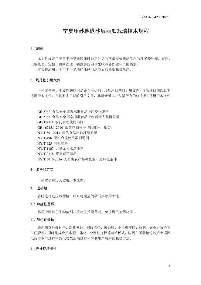 T/NAIA 0423-2025 宁夏压砂地退砂后西瓜栽培技术规程