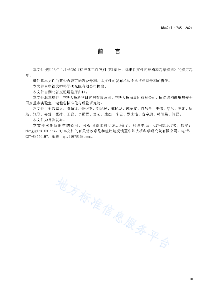 中铁大桥科学研究院有限公司、中铁大桥局集团有限公司、桥梁结构健康与安全国家重点实验室、湖北省标准化与质量研究院