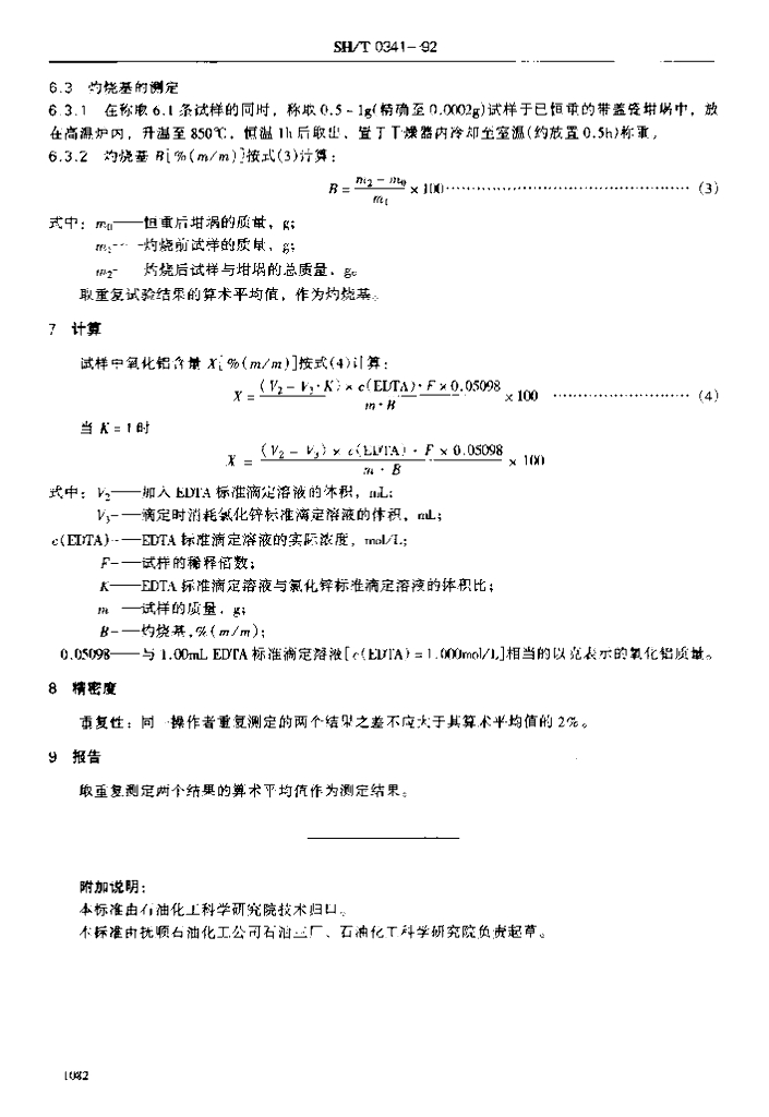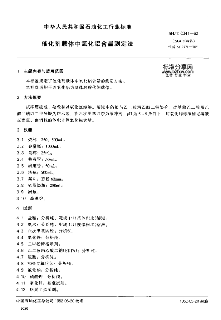 SH/T 0341-1992 催化剂载体中氧化铝含量测定法