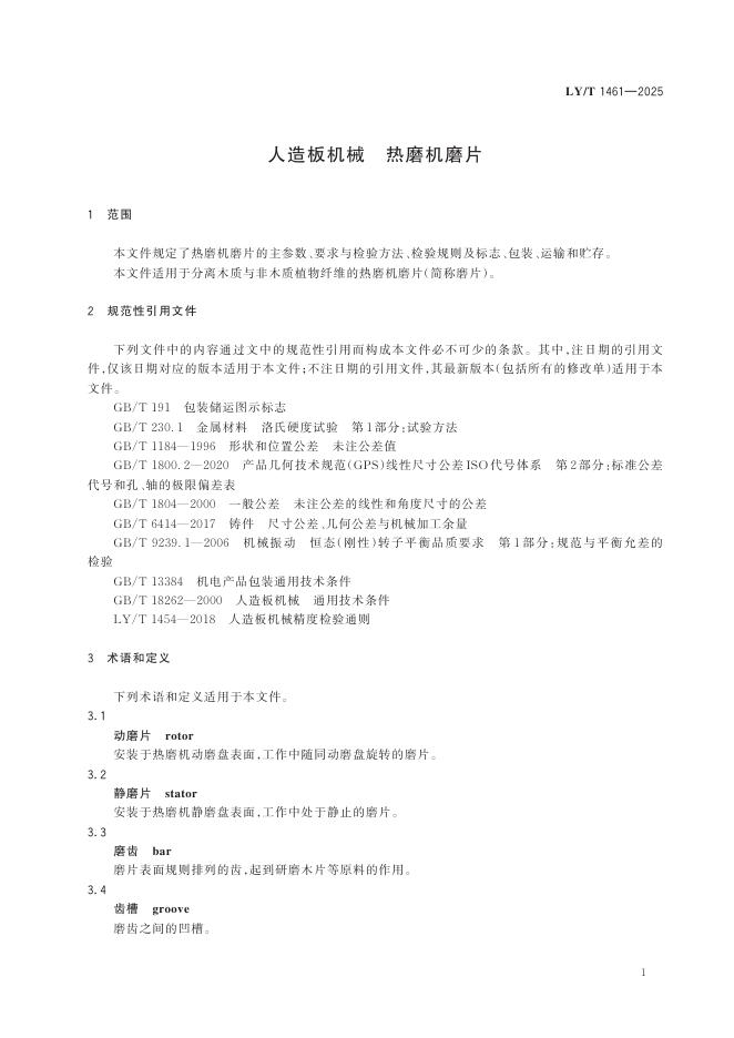 LY/T 1461-2025 人造板机械 热磨机磨片