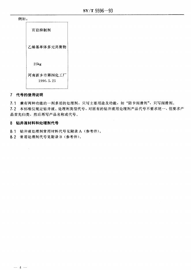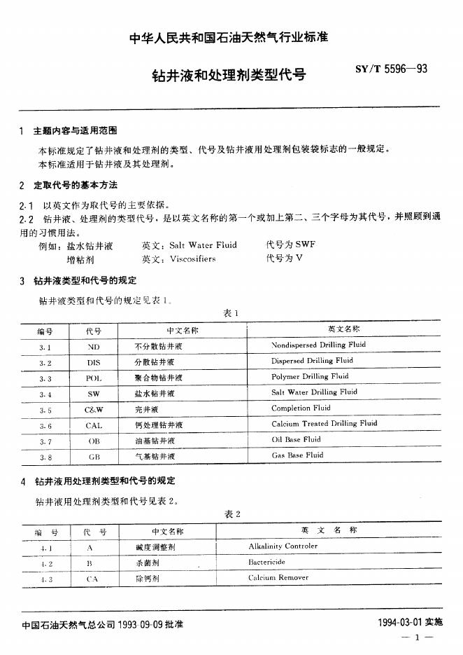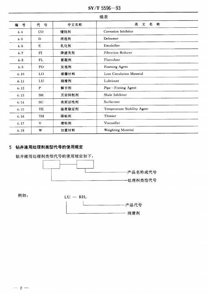 SY/T 5596-1993 钻井液和处理剂类型代号