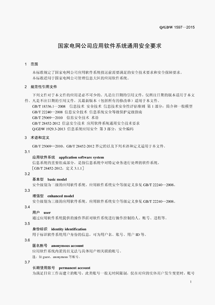 Q/GDW 1597-2015 国家电网公司应用软件系统通用安全要求