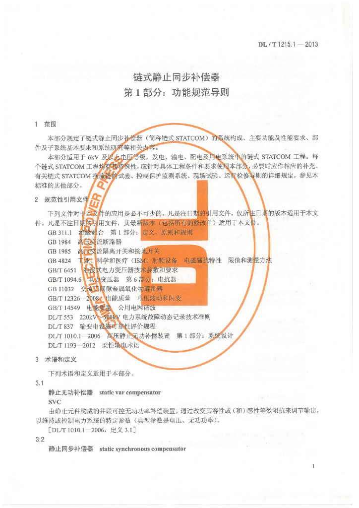 DL/T 1215.1-2013 链式静止同步补偿器 第1部分:功能规范导则