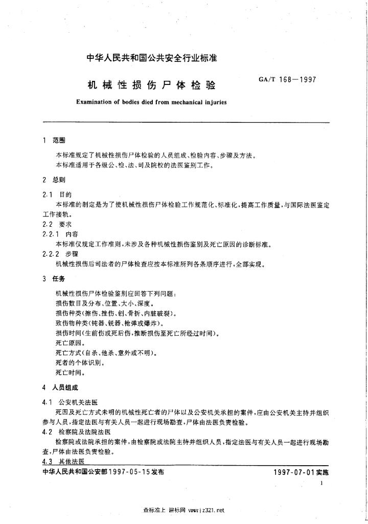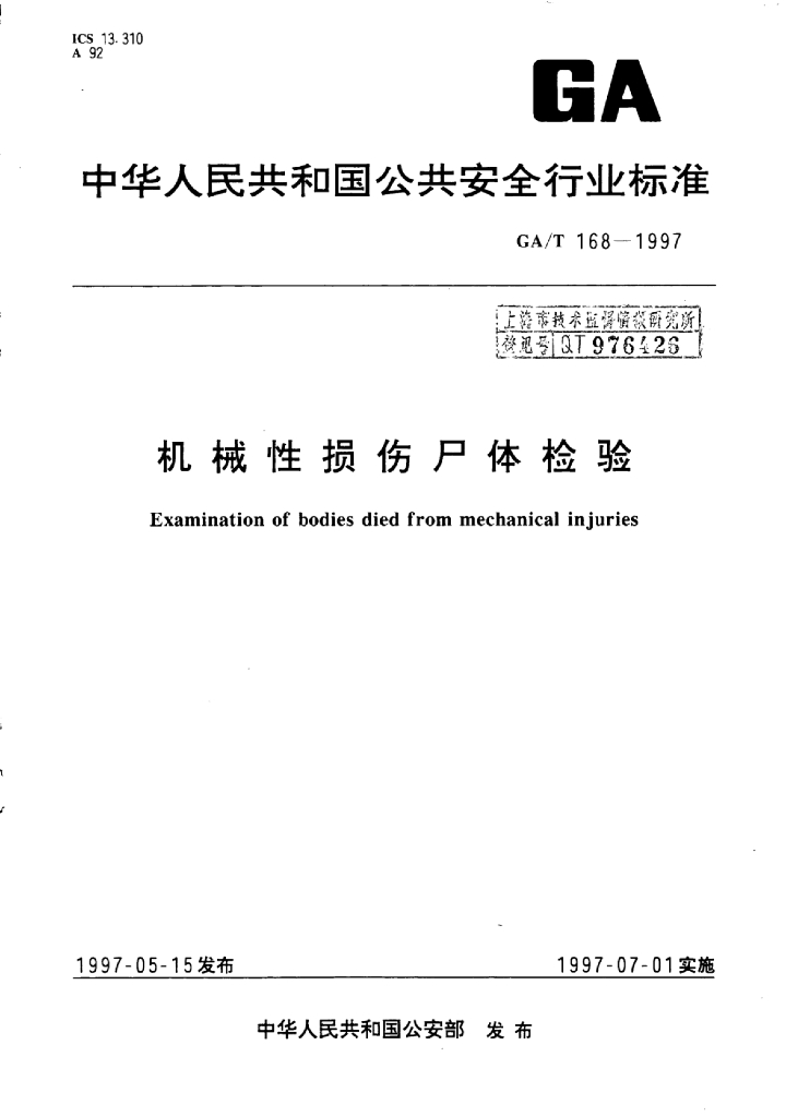 GA/T 168-1997 机械性损伤尸体检验