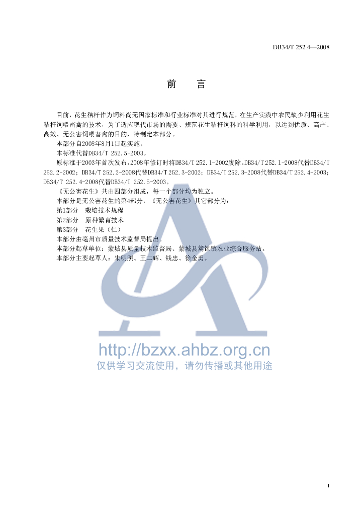 DB34/T 252.4-2008 无公害花生 第4部分:秸杆饲用技术规程