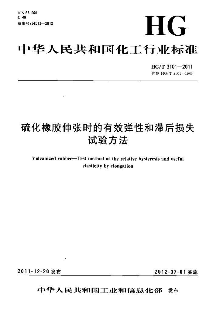 HG/T 3101-2011 硫化橡胶伸张时的有效弹性和滞后损失试验方法