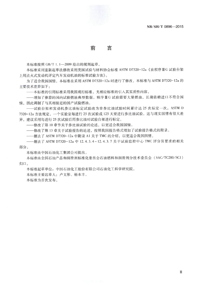 NB/SH/T 0896-2015 汽车发动机油性能的评定 程序ⅢG法