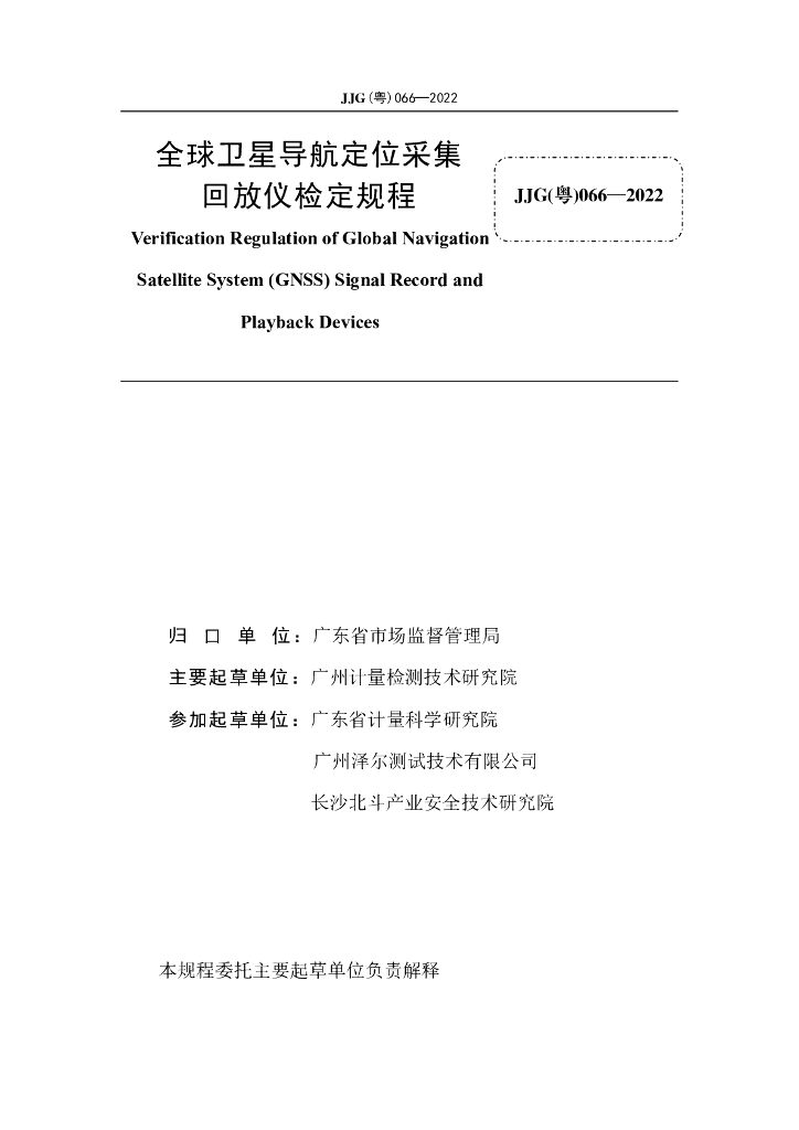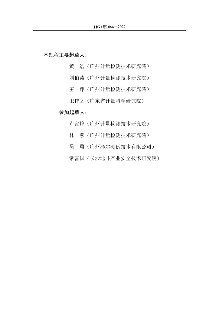 黄浩(广州计量检测技术研究院)、刘伯涛(广州计量检测技术研究院)、王萍(广州计量检测技术研究院)、卫作之(广东省计量科学研究院)、卢家煌(广州计量检测技术研究院)、林燕(广州计量检测技术研究院)、吴勇(广州泽尔测试技术有限公司)、常富国(长沙北斗产业安全技术研究院)