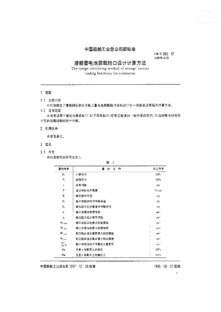 CB/Z 263-1997 潜艇蓄电池装载舱0设计计算方法