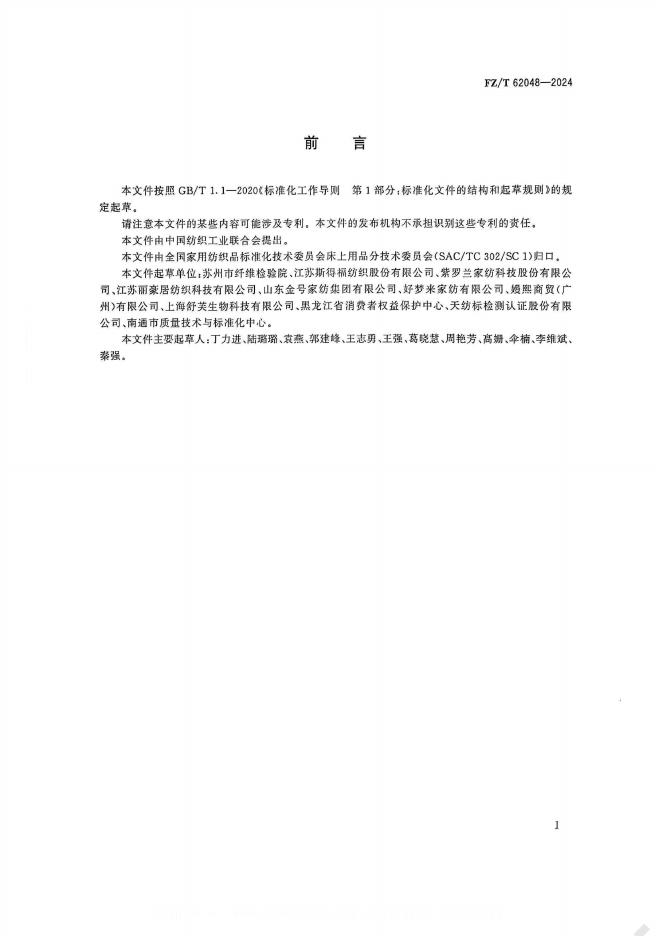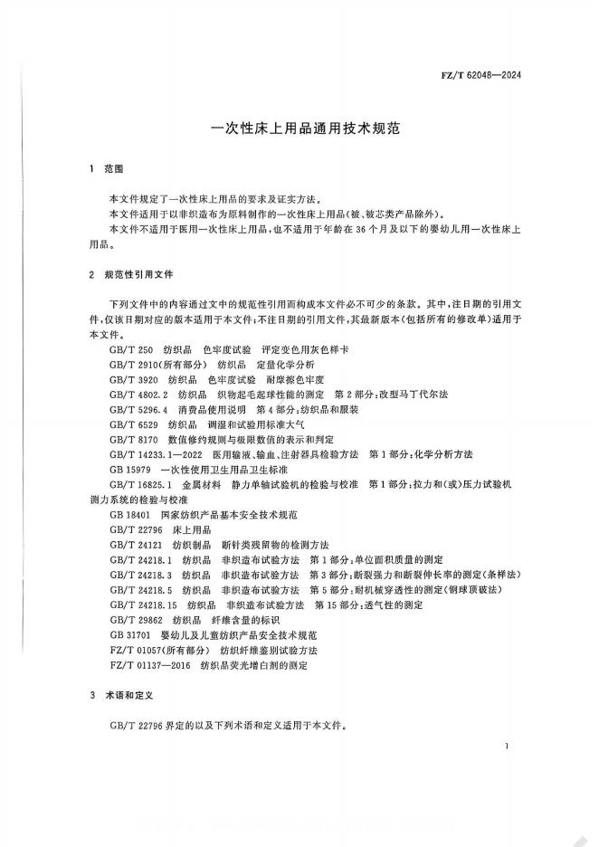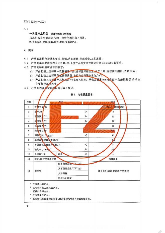 FZ/T 62048-2024 一次性床上用品通用技术规范
