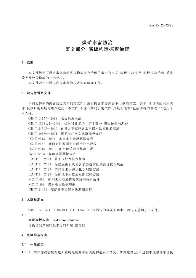 KA 27.2-2025 煤矿水害防治 第2部分:底板构造探查治理