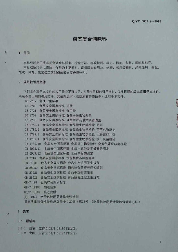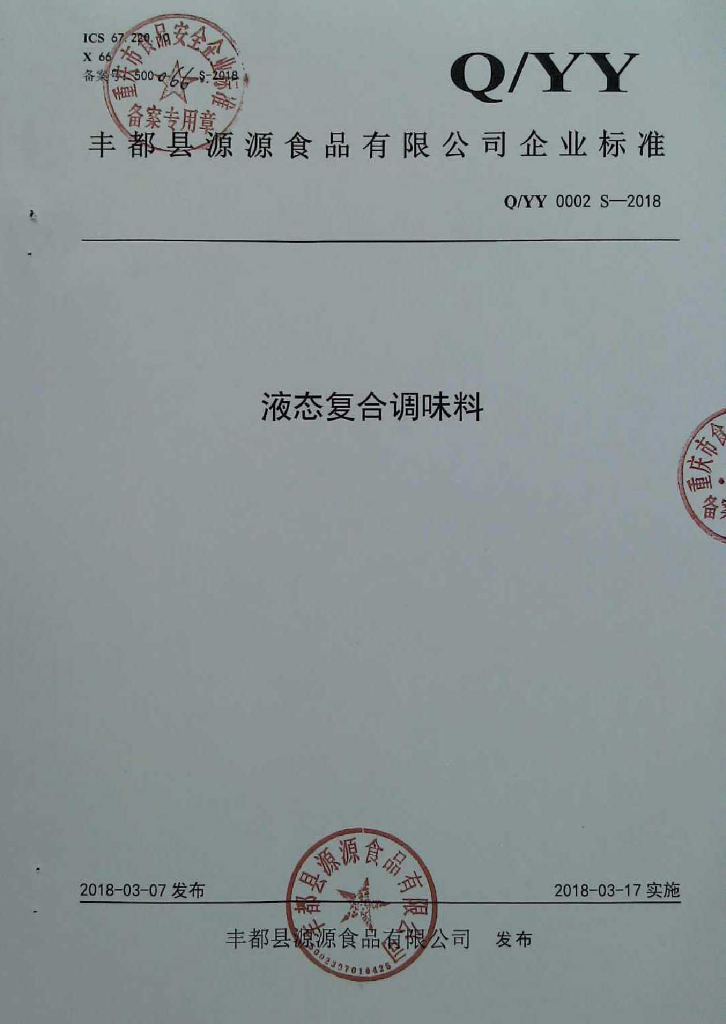 Q/YY 0002S-2018 液态复合调味料