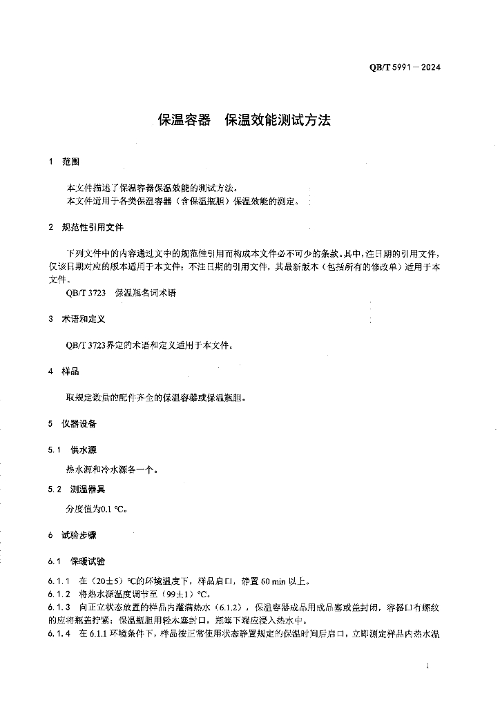 QB/T 5991-2024 保温容器 保温效能测试方法