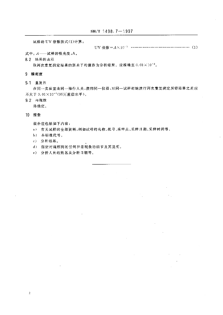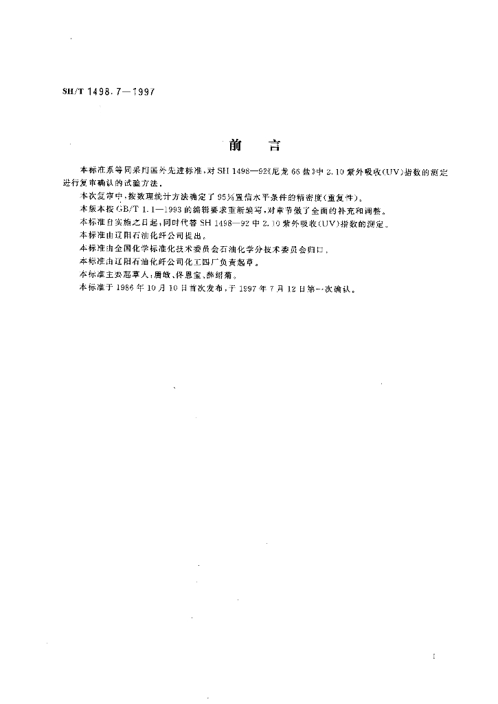 SH/T 1498.7-1997 尼龙66盐UV指数的测定 紫外分光光度法