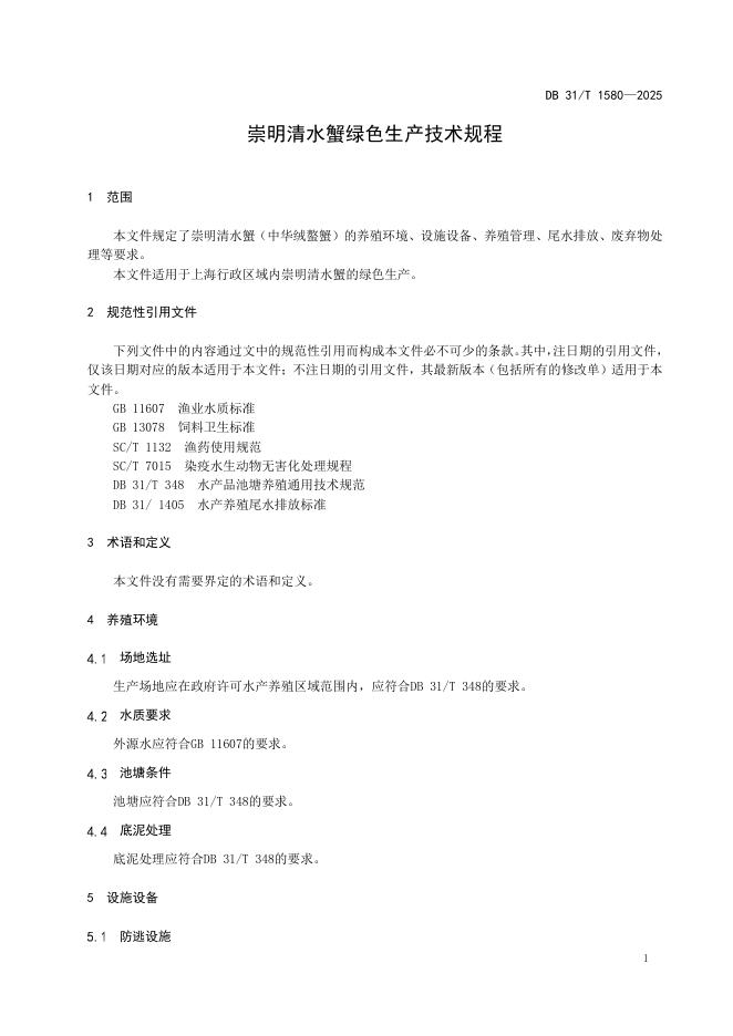 DB31/T 1580-2025 崇明清水蟹绿色生产技术规程