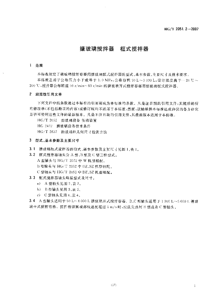 HG/T 2051.2-2007 搪玻璃搅拌器 框式搅拌器