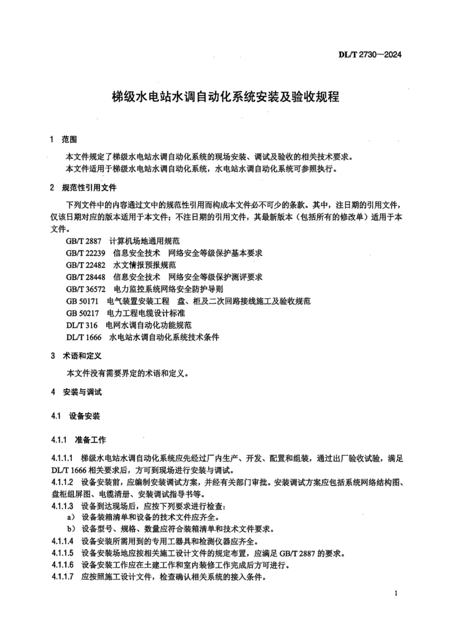DL/T 2730-2024 梯级水电站水调自动化系统安装及验收规程