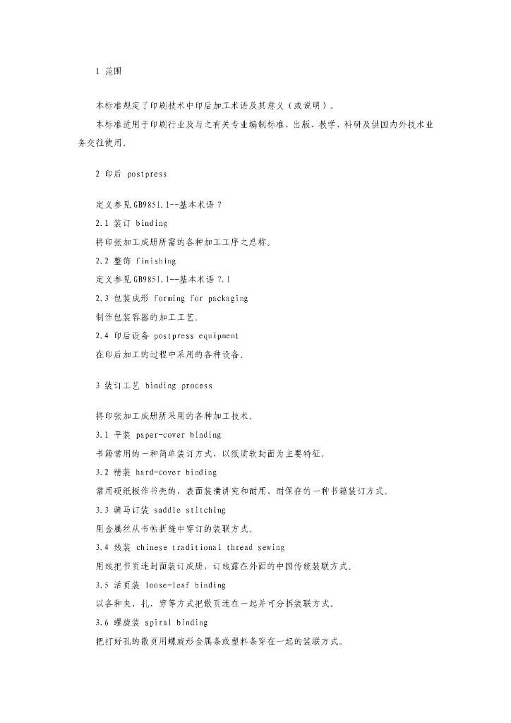 CY/T 7.1-1991 印后加工质量要求及检验方法 印后加工术语