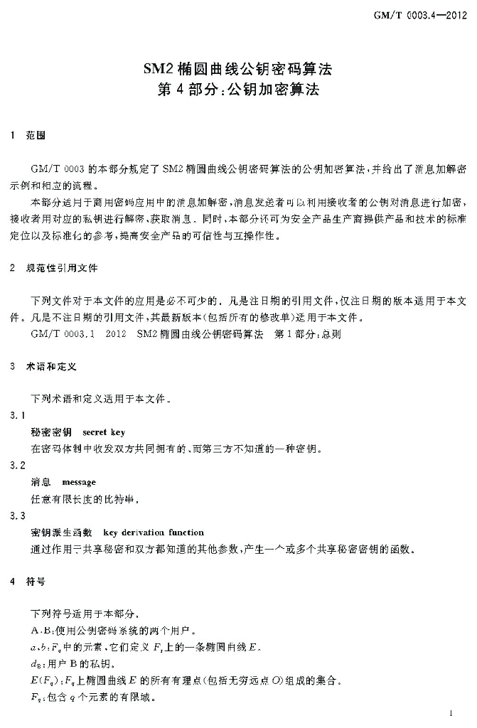 GM/T 0003.4-2012 SM2 椭圆曲线公钥密码算法 第4部分:公钥加密算法