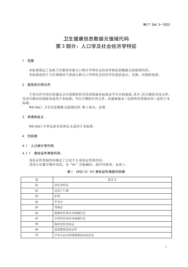 WS/T 364.3-2023 卫生健康信息数据元值域代码 第3部分:人口学及社会经济学特征