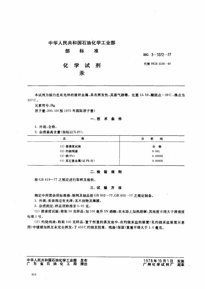 HG 3-1072-1977 化学试剂 汞