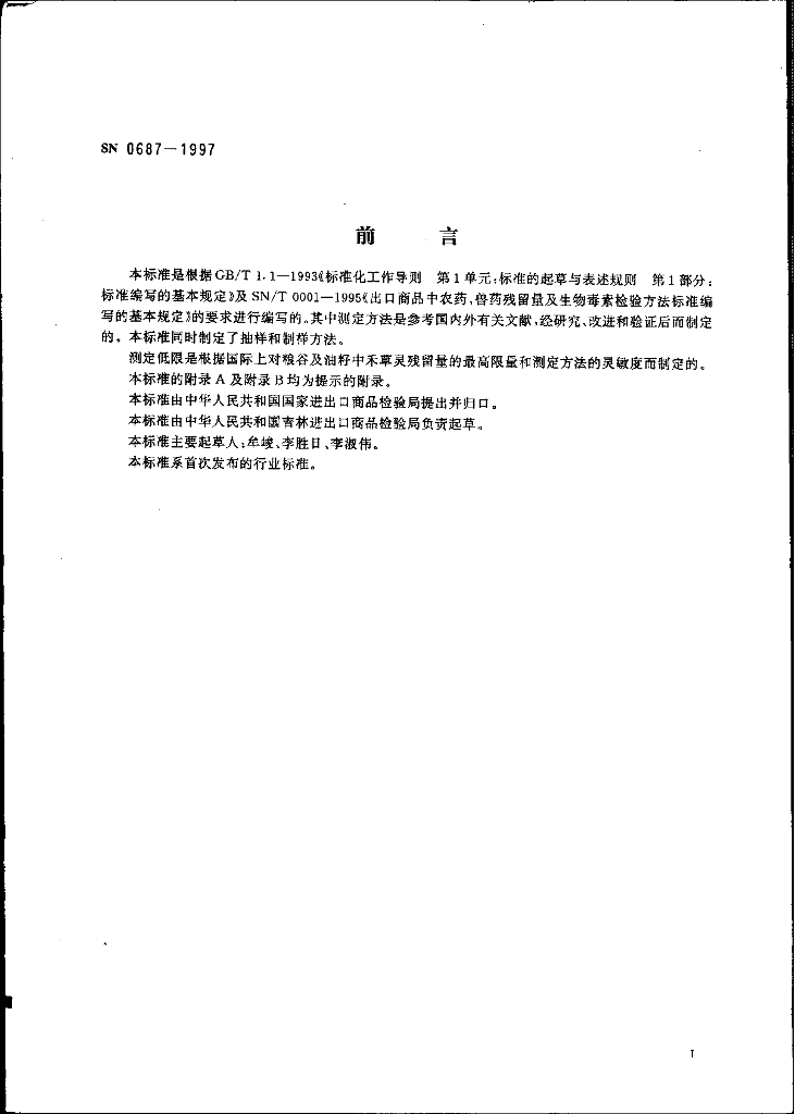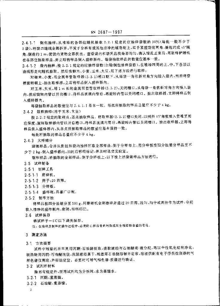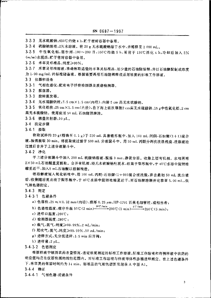 SN 0687-1997 出口粮谷及油籽中禾草灵残留量检验方法