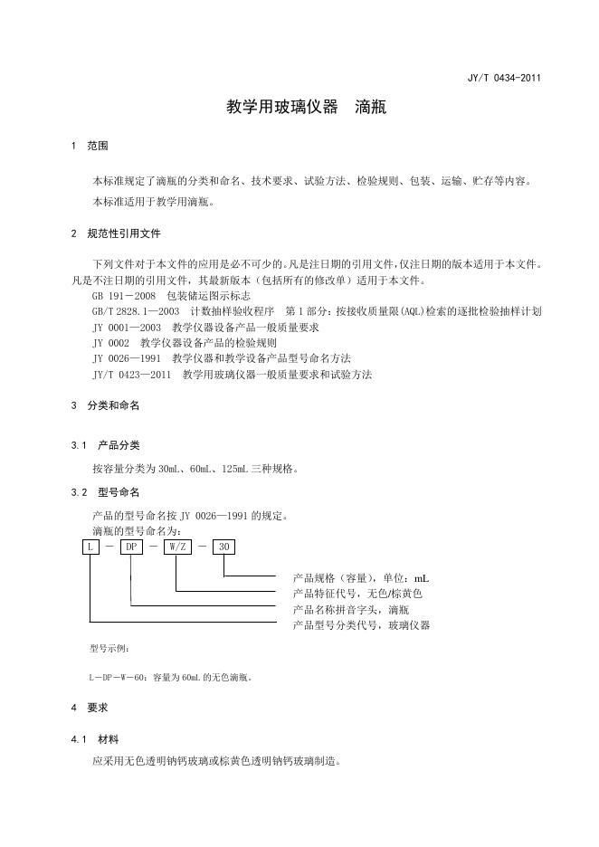 JY/T 0434-2011 教学用玻璃仪器 滴瓶