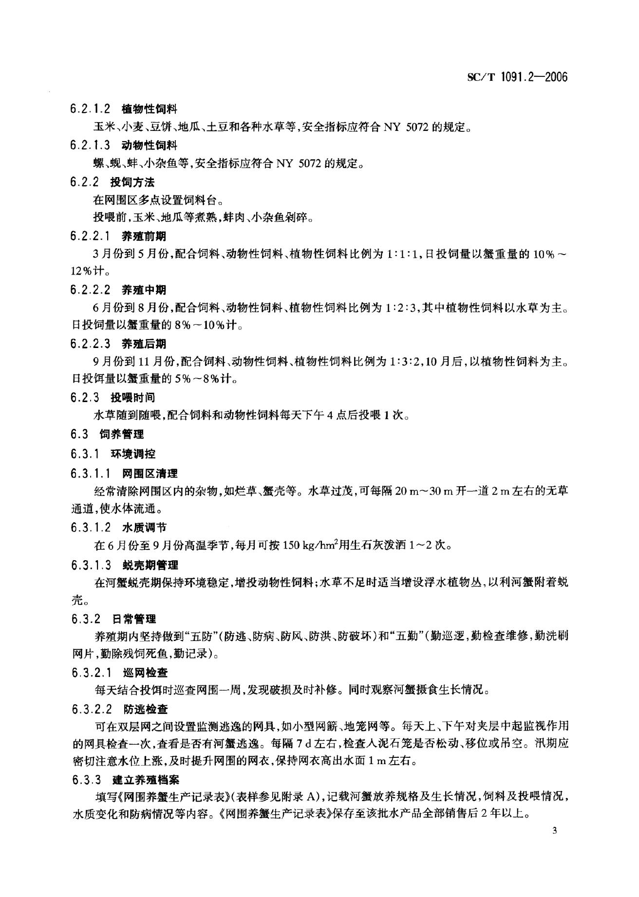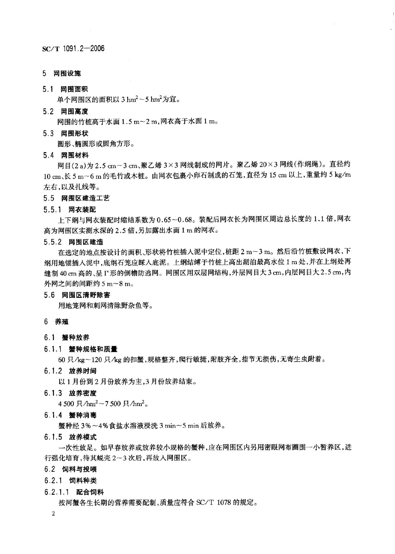 SC/T 1091.2-2006 草型湖泊网围养殖技术规范 第2部分:养蟹