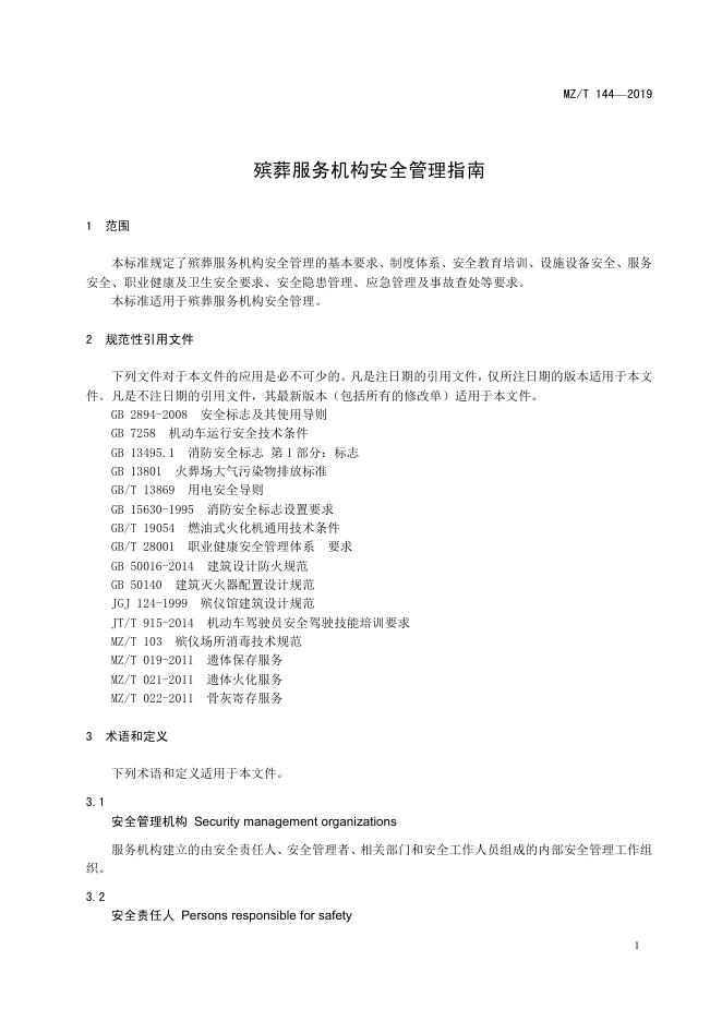 MZ/T 144-2019 殡葬服务机构安全管理指南