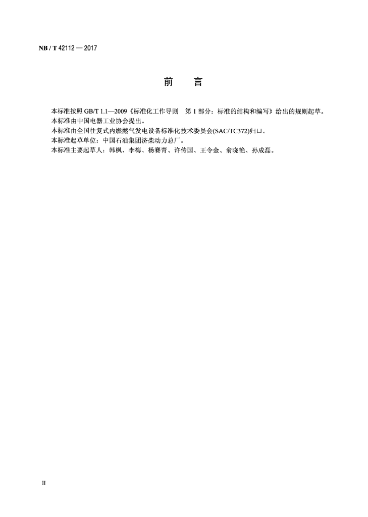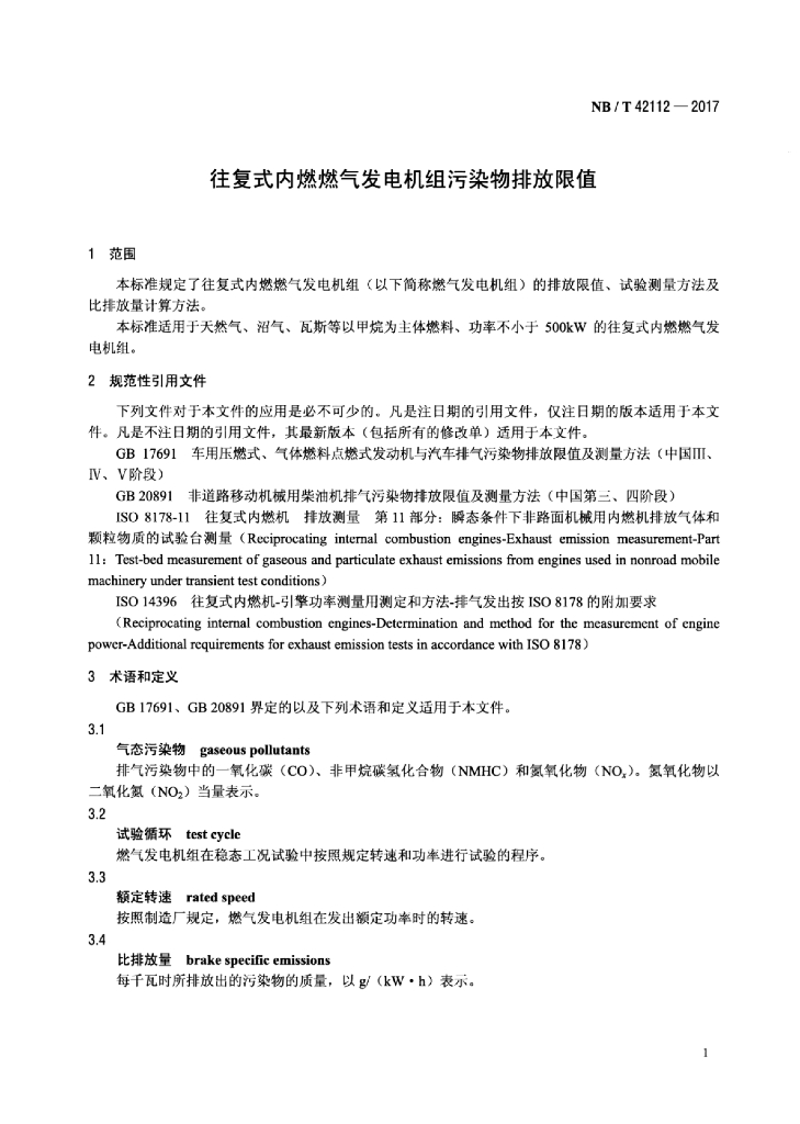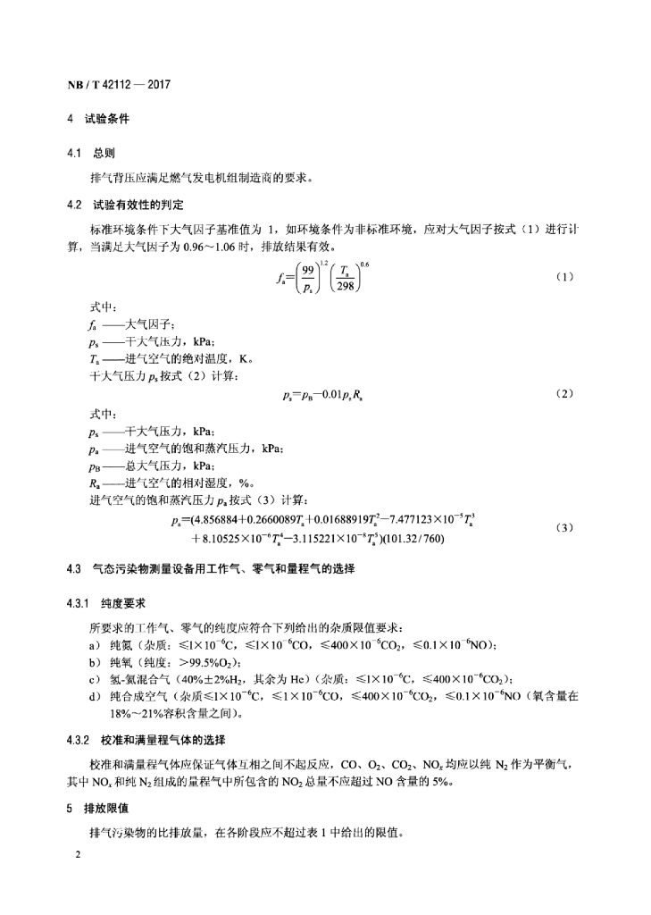 NB/T 42112-2017 往复式内燃燃气发电机组污染物排放限值