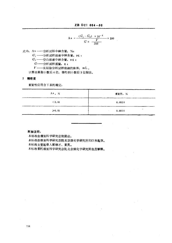 ZB 21004-1990 煤系硫铁矿及硫精矿中砷的测定方法