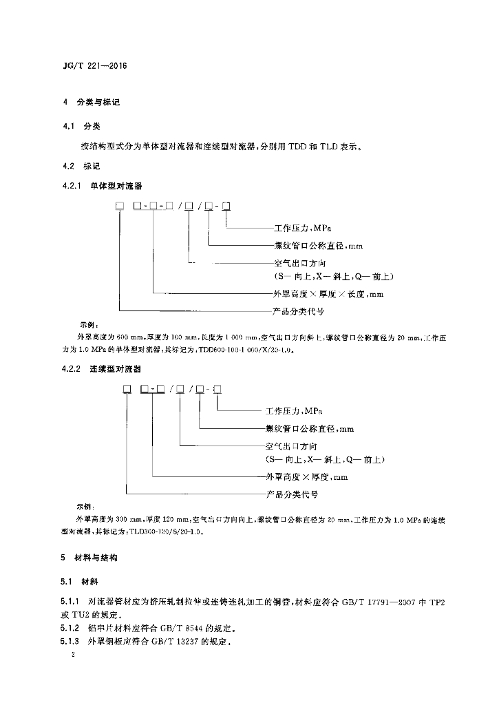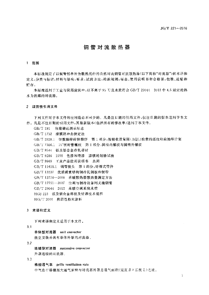 JG/T 221-2016 铜管对流散热器