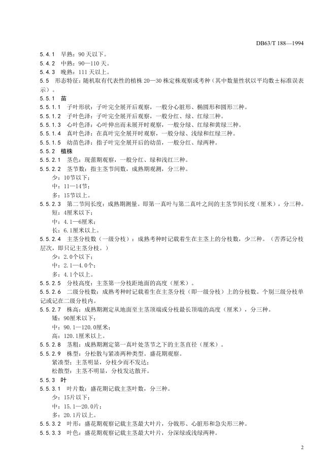 DB63/T 188-1994 荞麦品种观察记载规程