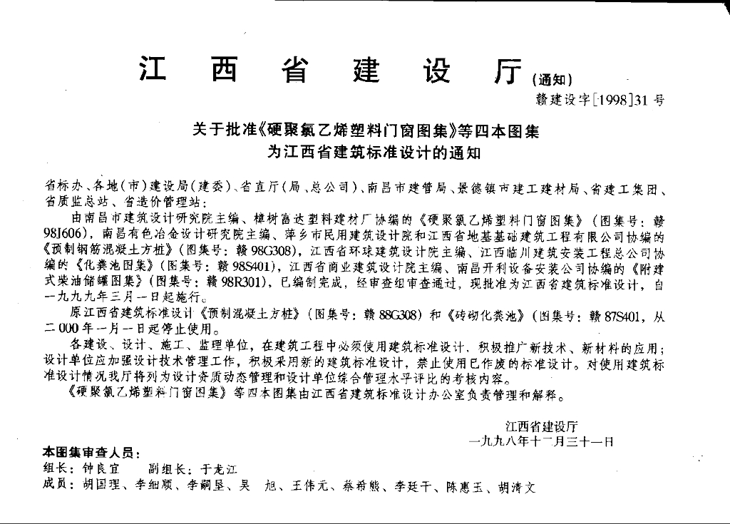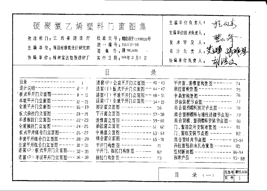 赣98J606 硬聚氯乙烯塑料门窗图集