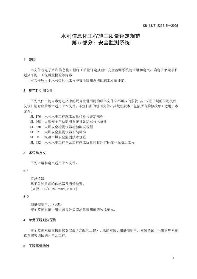 DB63/T 2256.5-2025 水利信息化工程施工质量评定规范 第5部分 安全监测系统