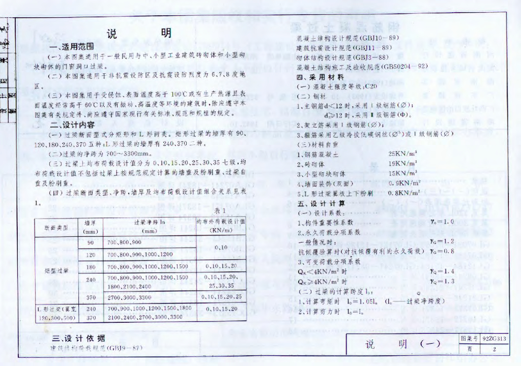 92ZG313 钢筋混凝土过梁图集