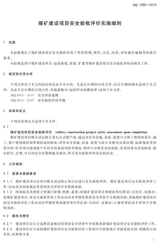 AQ 1096-2014 煤矿建设项目安全验收评价实施细则