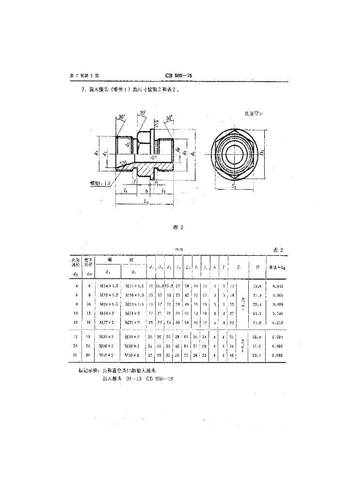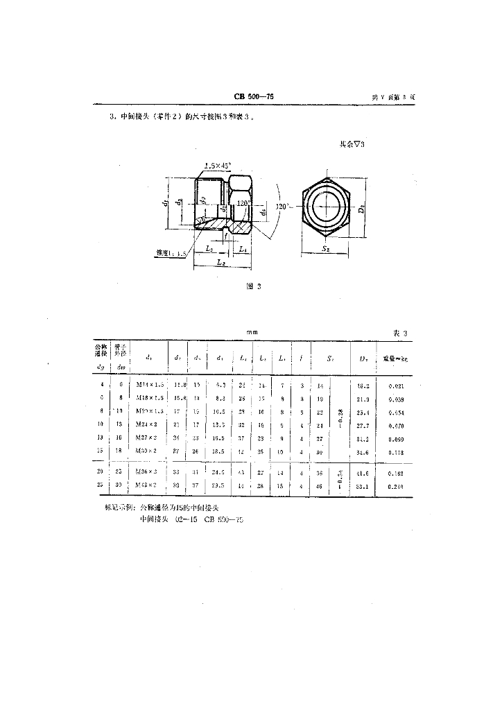 CB 500-1975 柴油机管子螺纹接头