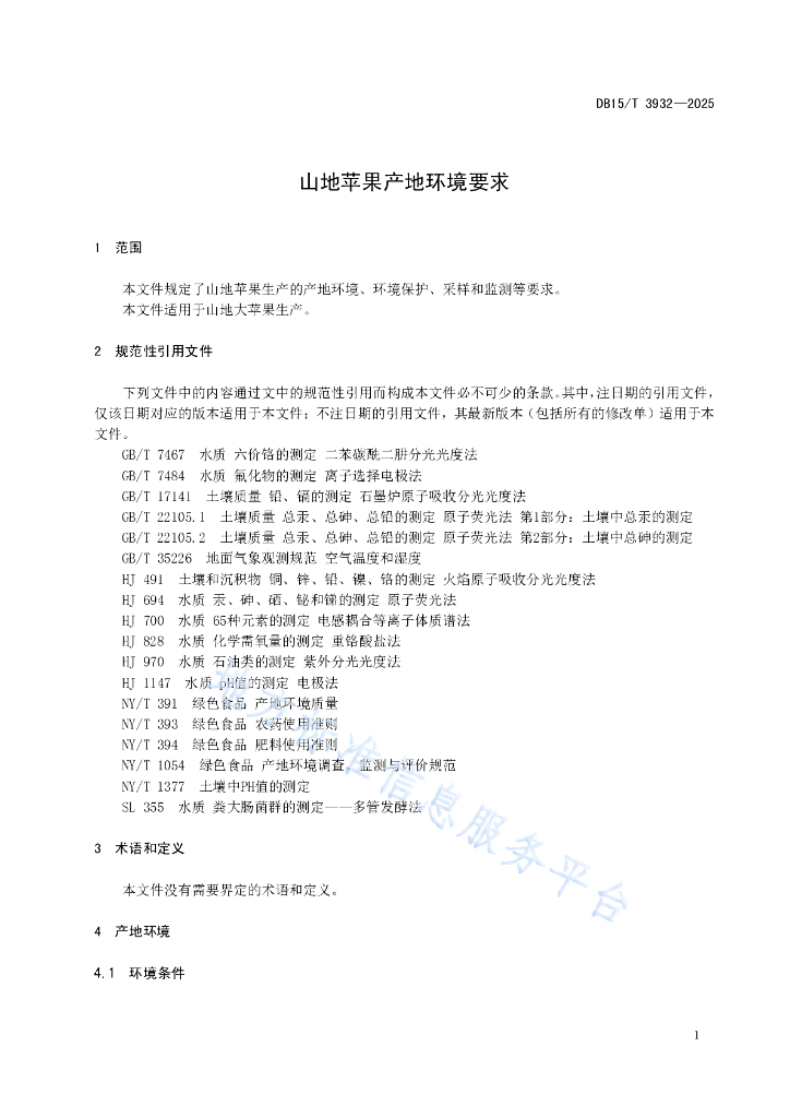 DB15/T 3932-2025 山地苹果产地环境要求