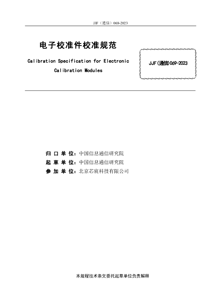 JJF(通信)069-2023 电子校准件校准规范(报批稿)