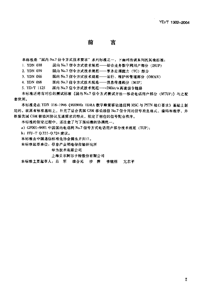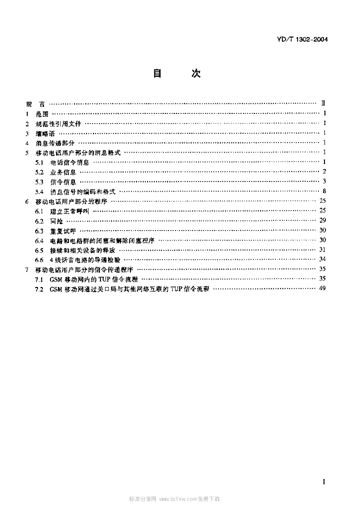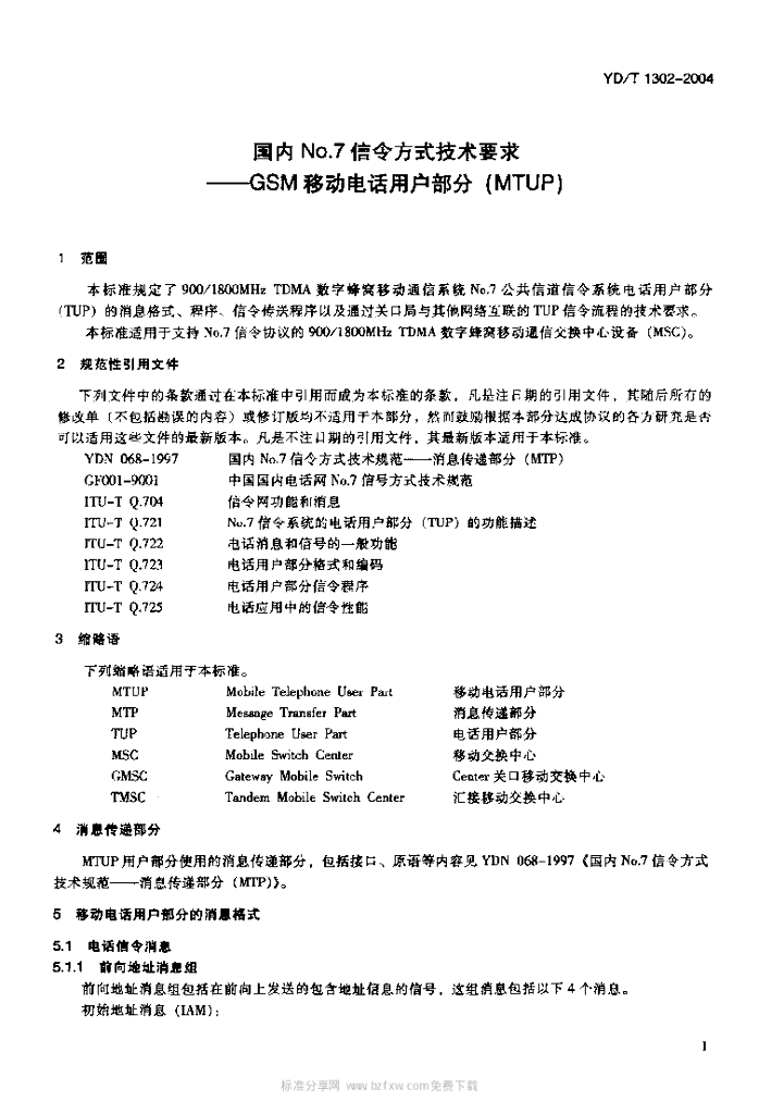 YD/T 1302-2004 国内 No.7 信令方式技术要求 GSM 移动电话用户部分(MTUP)
