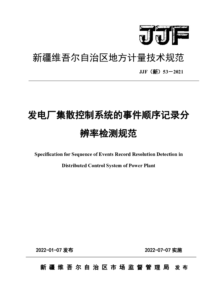 JJF(新)53-2021 发电厂集散控制系统的事件顺序记录分辨率检测规范