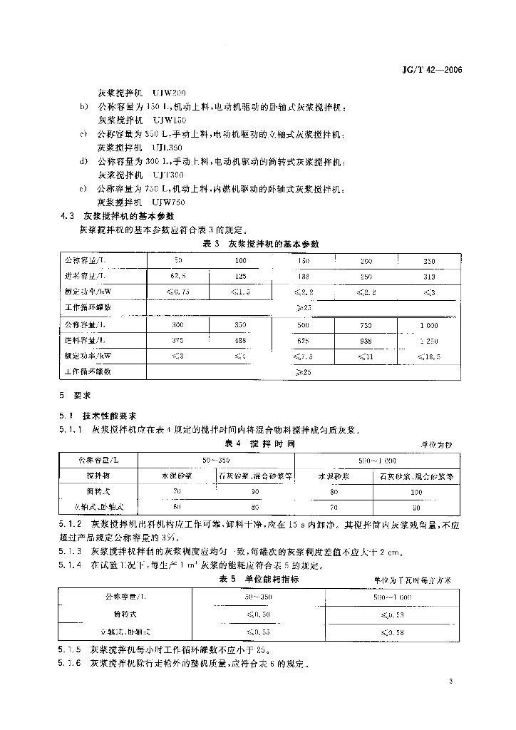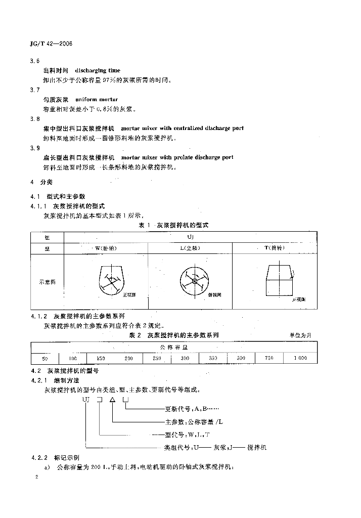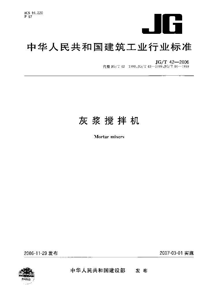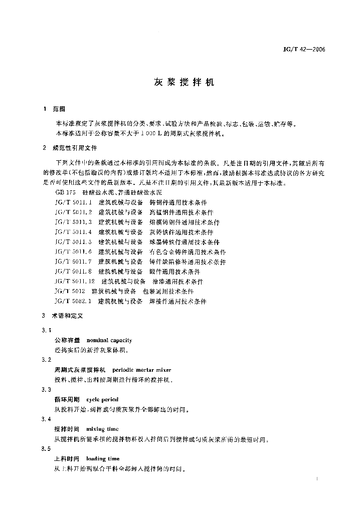 JG/T 42-2006 灰浆搅拌机