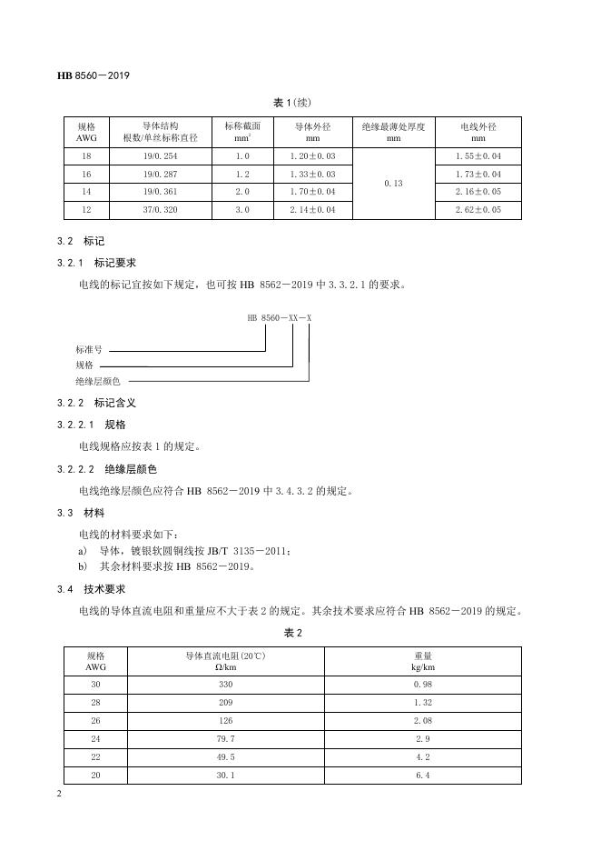 HB 8560-2019 航空用镀银铜芯辐照交联乙烯-四氟乙烯共聚物单层挤制绝缘电线