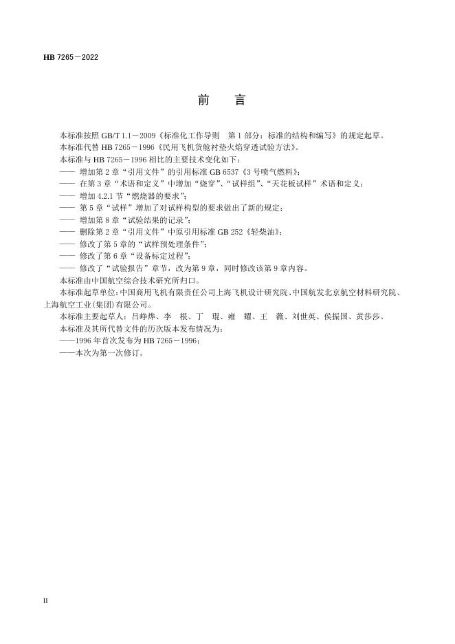 HB 7265-2022 民用飞机货舱衬垫火焰穿透试验方法